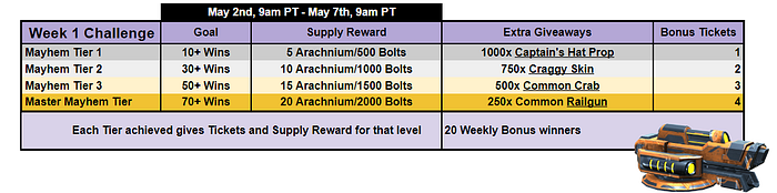 This arena, PvP, mech-based shooter is having four one-week challenges, with the first being based on how many wins players get. Split into tiers, you get a chance to be dropped legendary parts for your tank.